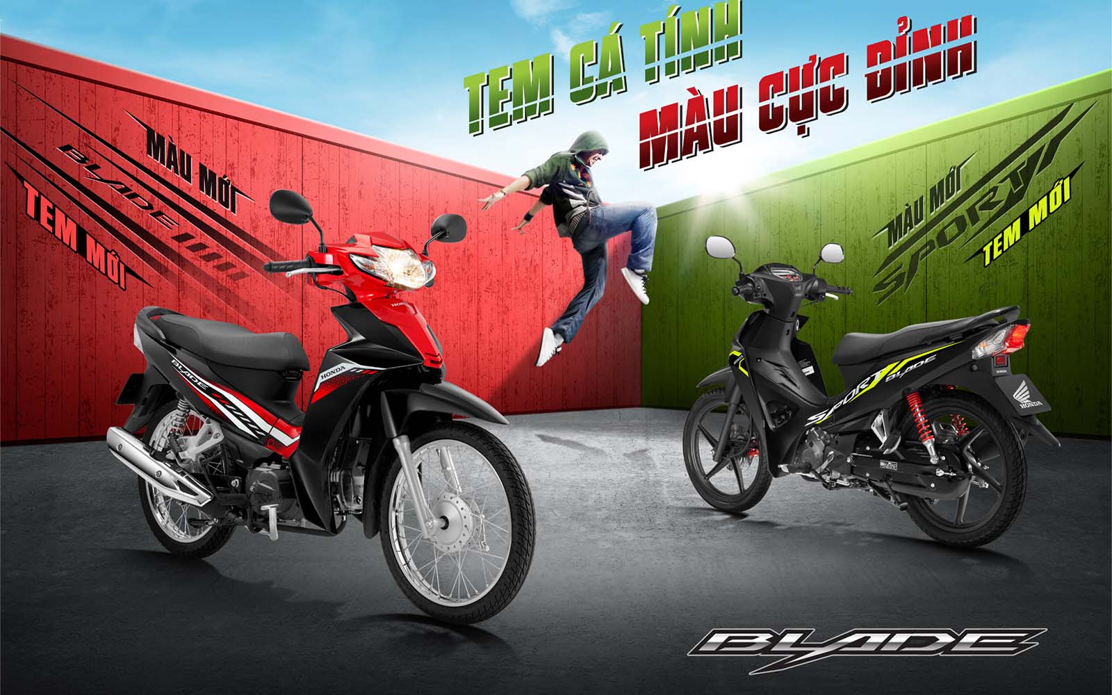 Điểm nhấn mới mẻ trên thế hệ Blade 2023 đến từ thiết kế tem độc đáo trên mỗi chiếc xe. Phiên bản Thể thao (vành đúc phanh đĩa) sở hữu tem xe "SPORT". Phiên bản Đặc biệt (vành nan hoa, phanh đĩa) mang diện mạo sắc sảo với dải tem chữ “SPECIAL” còn phiên bản Tiêu chuẩn (vành nan hoa, phanh cơ) lại cách điệu tem xe, phối hợp giữa các mảng màu năng động và khỏe khoắn.