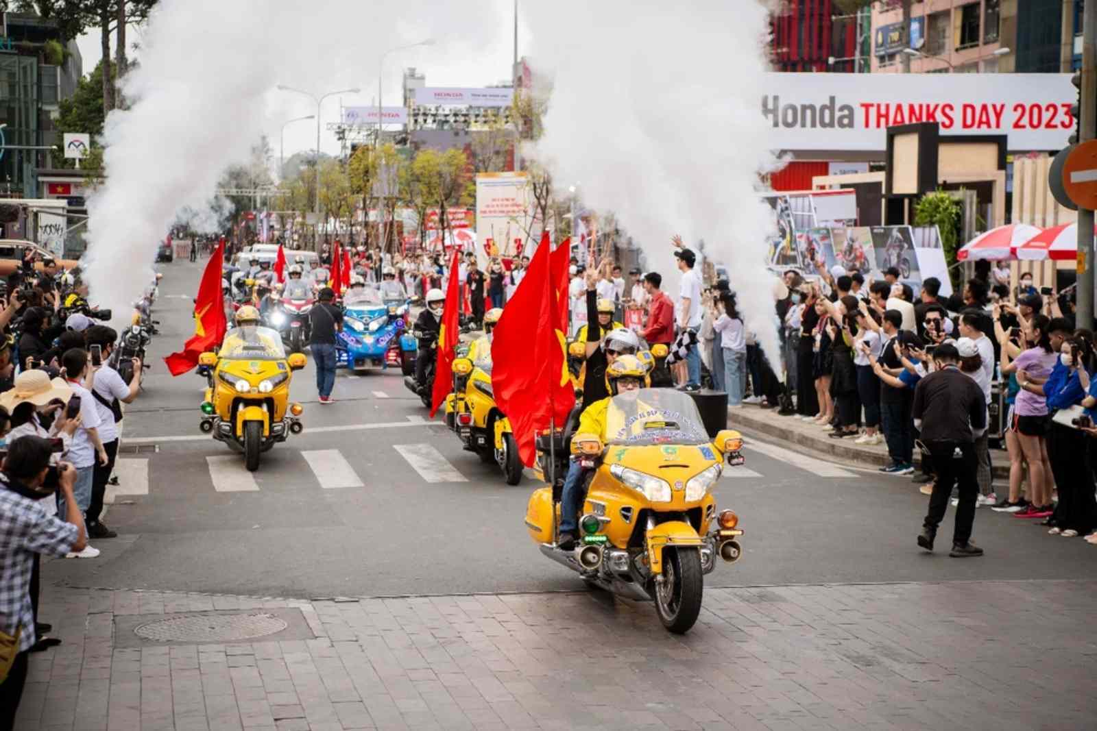 Đoàn xe Honda diễu hành như nhịp phách mạnh mẽ đã trở thành “Thanh âm Tự hào Đường phố” cực ấn tượng chỉ có tại Thanks day. Màn trình diễn xe cùng âm thanh động cơ đầy uy lực sẽ được tái hiện lại trên những cung đường trung tâm của thành phố Hồ Chí Minh ở Thanks Day 2025. Dẫn đầu là xe Goldwing đẳng cấp, theo sau bởi đội hình 200 ô tô, xe máy và phân khối lớn hùng hậu cùng hàng trăm chiến mã của cộng đồng +84 Honda Bikers.