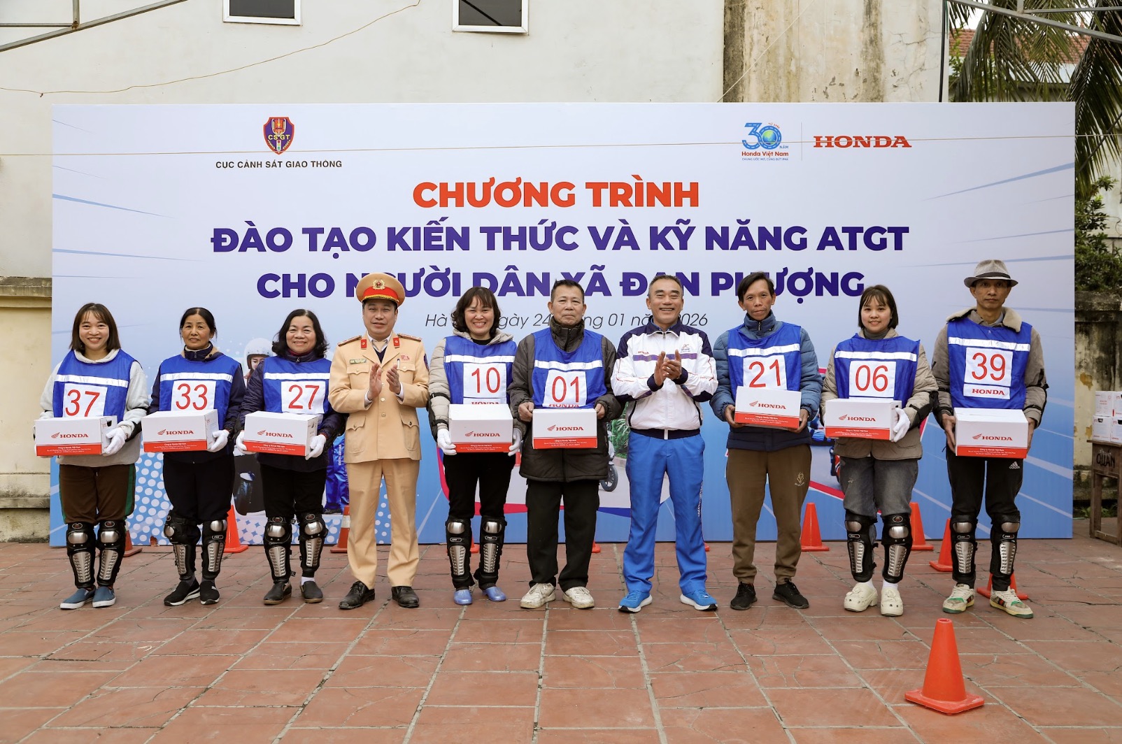 Hoạt động diễn ra trong hai ngày 23 và 24/1/2026, với sự tham dự của Thượng tá Nguyễn Hồng Long - Phó trưởng phòng Phòng hướng dẫn tuyên truyền và điều tra, giải quyết tai nạn giao thông (Cục CSGT); bà Nguyễn Thị Hồng Nhung - Trưởng phòng Xúc tiến an toàn giao thông Honda Việt Nam; cùng đại diện chính quyền địa phương và đông đảo người dân trên địa bàn.