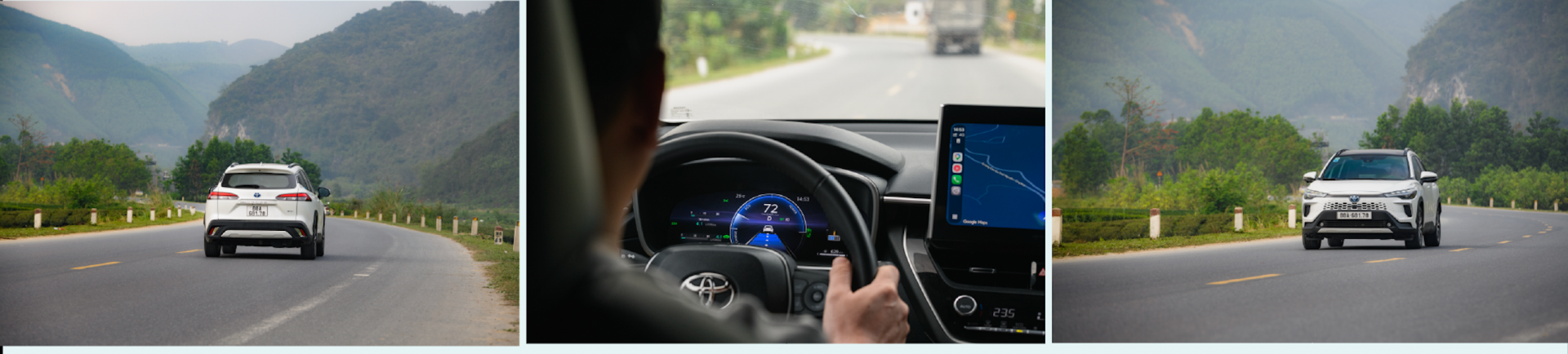Trên con đường có nhiều núi cao, vực sâu với những khúc cua quanh, leo đèo - đổ dốc lên tới 10% và vào cua liên tục diễn ra hầu hết chặng đường, Corolla Cross HEV có cơ hội thể hiện rõ khả năng vận hành của mình. Với khối động cơ Hybrid tiết kiệm nhiên liệu, công suất chỉ 97 HP và 142 Nm, nhưng khả năng bứt phá tăng tốc lại rất đáng nể bởi được bổ trợ thêm 53kW và 163 Nm mô-men xoắn từ mô-tơ điện. Nhờ đó, mẫu C-SUV này vẫn mang đến cảm giác vận hành hứng khởi và lanh lẹ trong khi vẫn giữ được ưu thế tiết kiệm nhiên liệu.