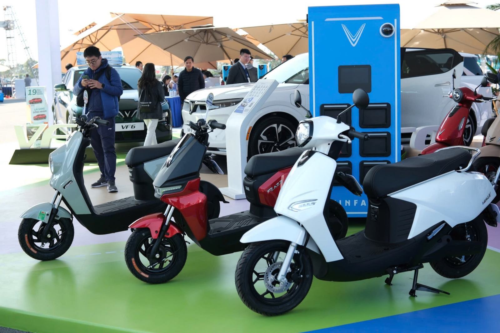 Bên cạnh các sản phẩm ô tô, khu vực xe máy điện của VinFast cũng gây ấn tượng với loạt 12 dòng sản phẩm xe máy điện, đáp ứng đa dạng nhu cầu di chuyển của người dùng như: Evo Grand, Feliz, ZGoo, Flazz... Việc quy tụ đầy đủ các dòng xe trong cùng một không gian giúp khách tham quan có cái nhìn tổng thể hơn về dải sản phẩm xanh của VinFast.